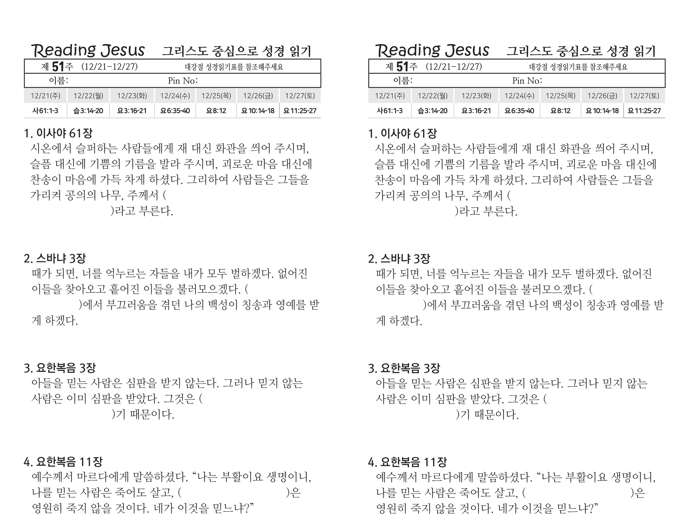 성경퀴즈 제51주